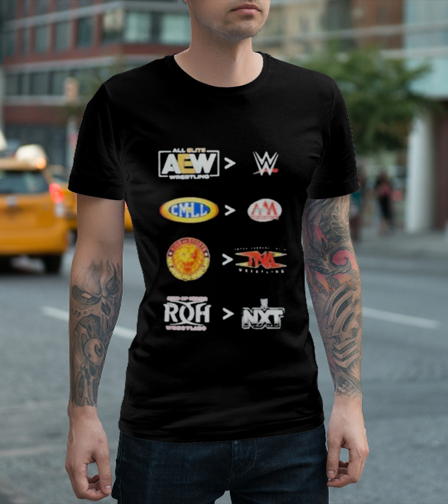 AEW Vs WWE CMLL Vs AAA NJPW Vs TNA ROH Vs NXT Wrestling Logos T-Shirt