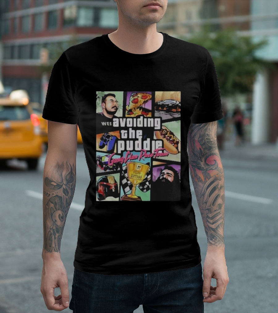 Avoiding The Puddle Gang Clan Race Team Pizza Hotdog Trophy Racing Flags T-Shirt