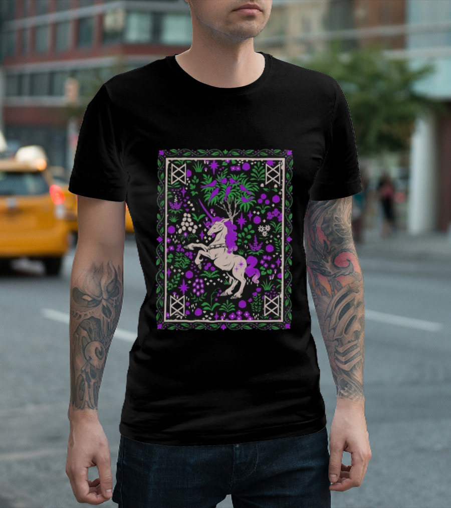 Garyl Unicorn Enchanted Forest Magic Purple Pink Green Botanical T-Shirt