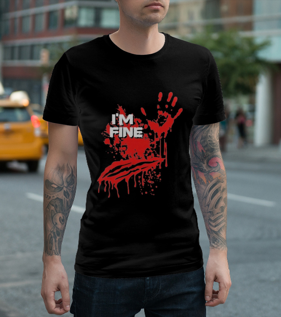 I'm Fine Handprint Blood Splatter Glock9 T-Shirt