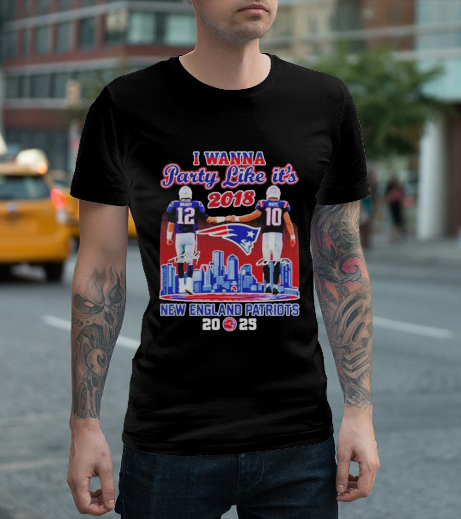 I Wanna Party Like It’s 2018 New England Patriots Tom Brady Drake Maye Skyline Signatures T-Shirt