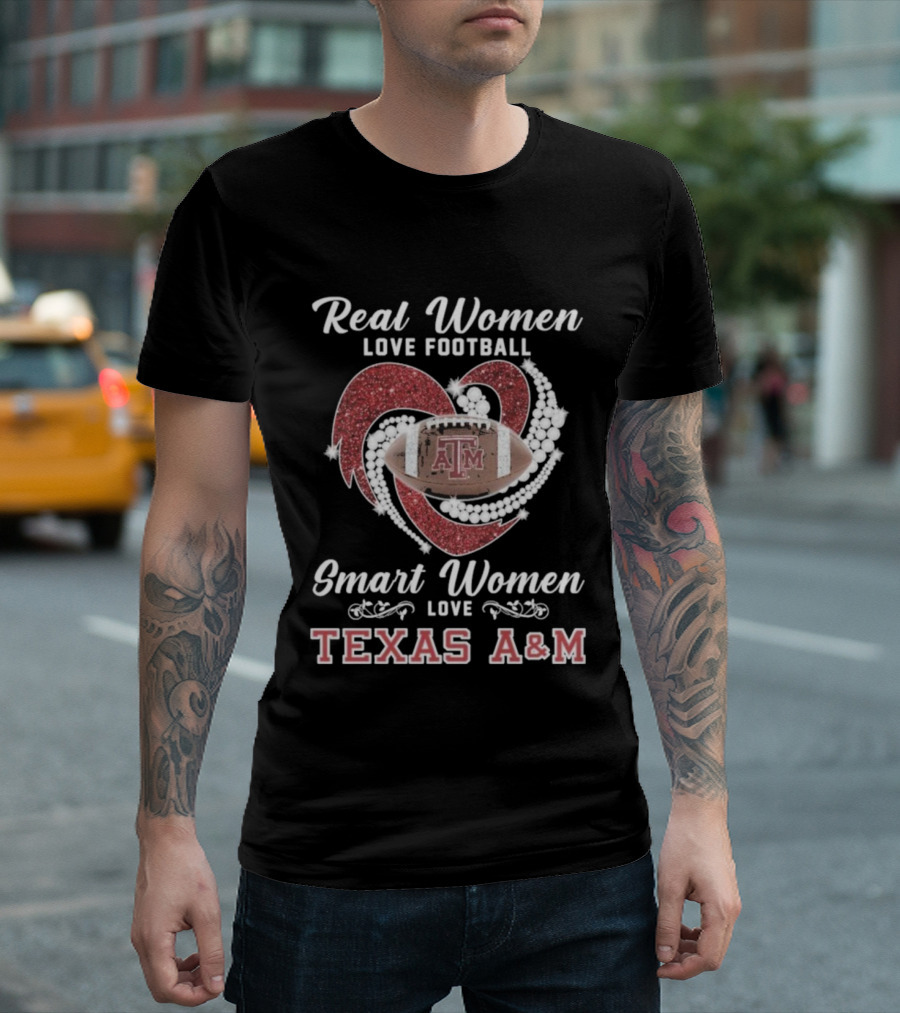 Real Women Love Football Smart Women Love Texas A&M Aggies With Heart And Football T-Shirt