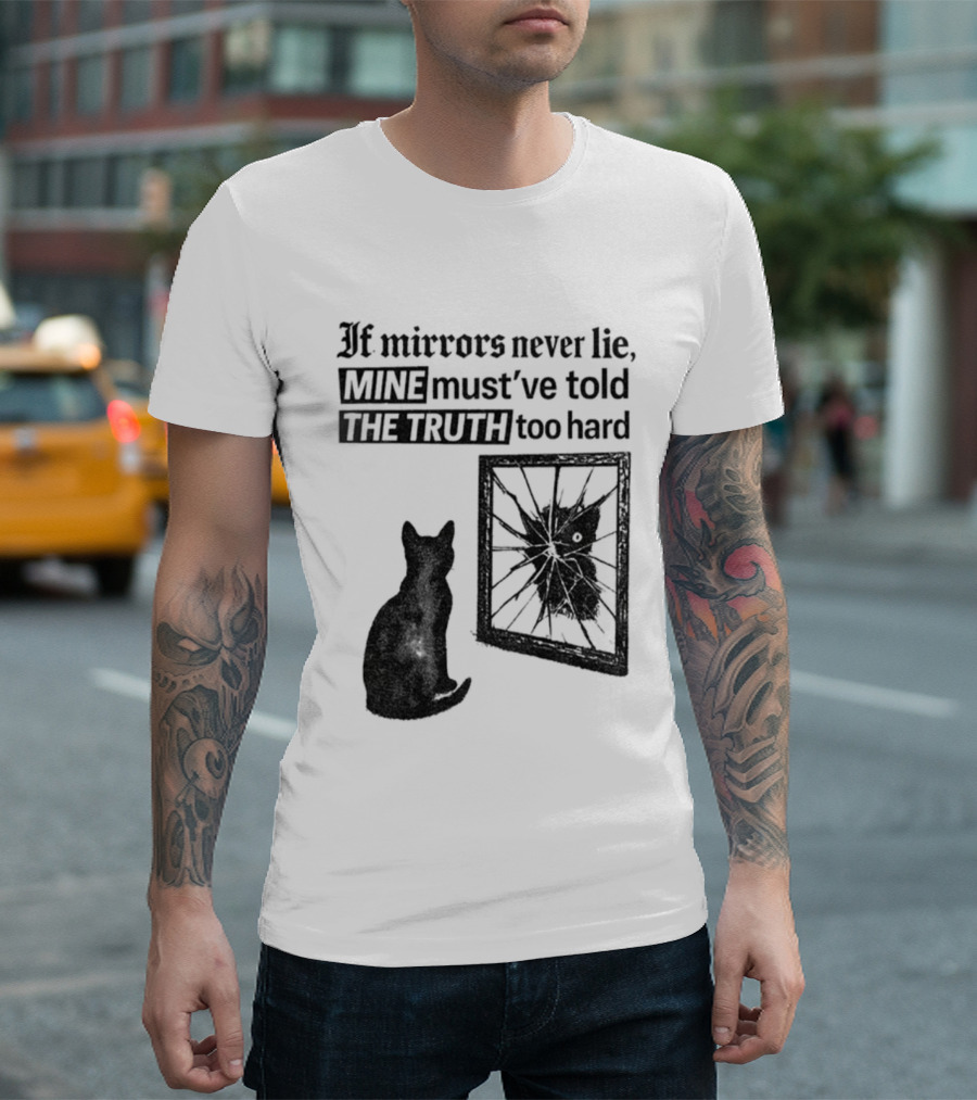 If Mirrors Never Lie Mine Must've Told The Truth Too Hard Black Cat Vintage T-Shirt