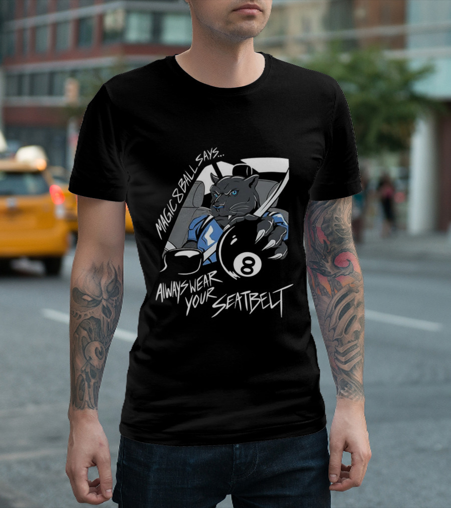 Magic 8 Ball Says Always Wear Your Seatbelt Panther 8 Ball T-Shirt