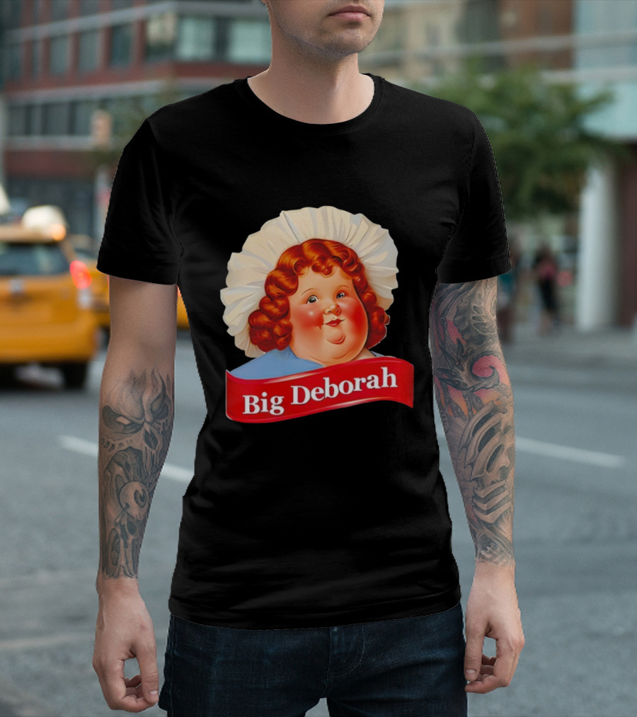 Big Deborah Nostalgic Character Icon with Red Hair and Chef Hat T-shirt — on-model street pose, front view.