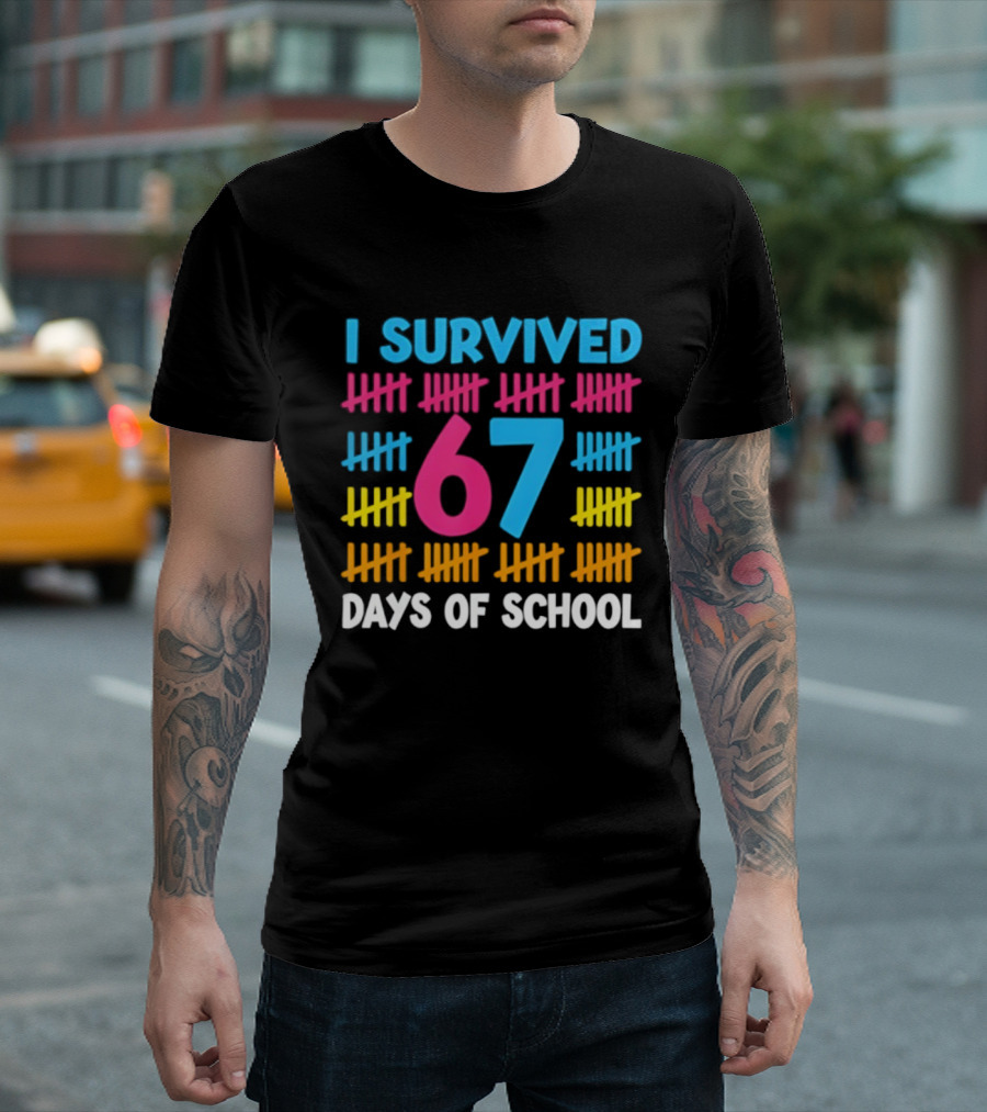 I Survived 67 Days Of School Colorful Tally Marks Fun Design T-Shirt
