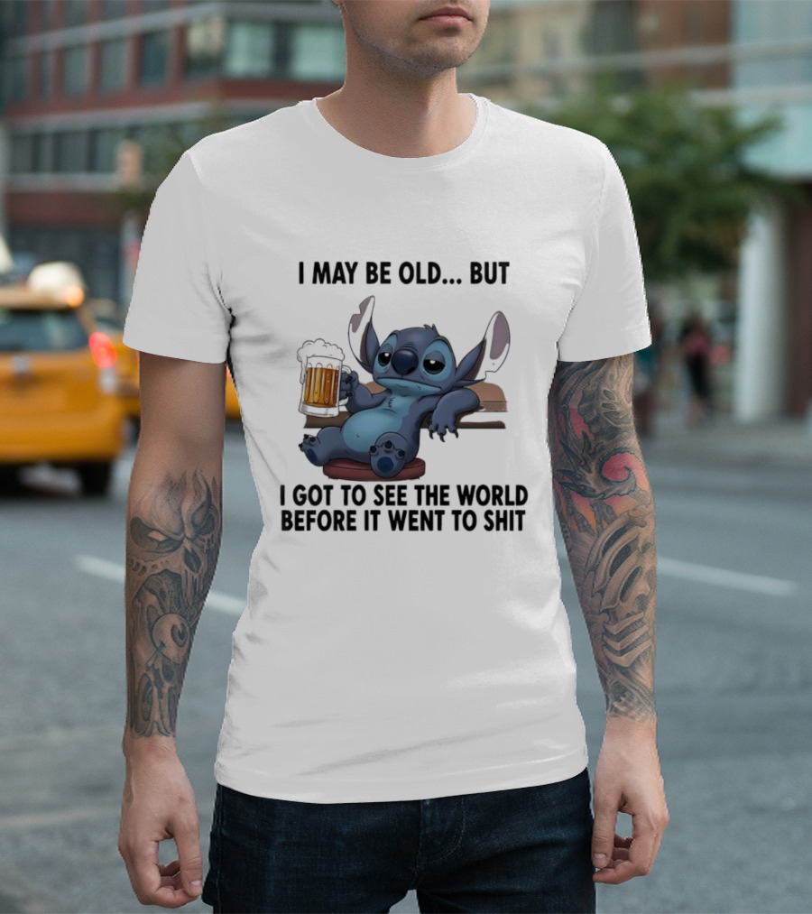 Stitch Beer Humor I May Be Old But I Got To See The World Before It Went To Shit T-Shirt