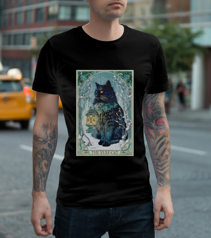 Creepmas Vintage The Yule Cat Tarot Card Lantern Snowy Dark Christmas T-Shirt