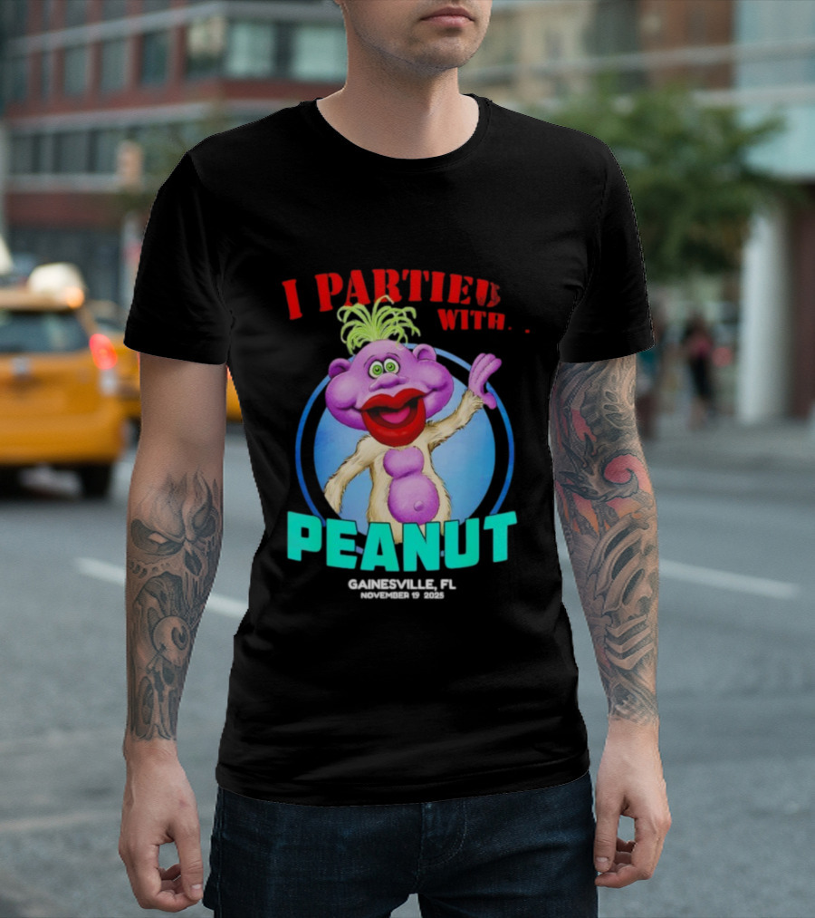 I Partied With Peanut Gainesville FL 2025 Puppet Character Fun T-Shirt
