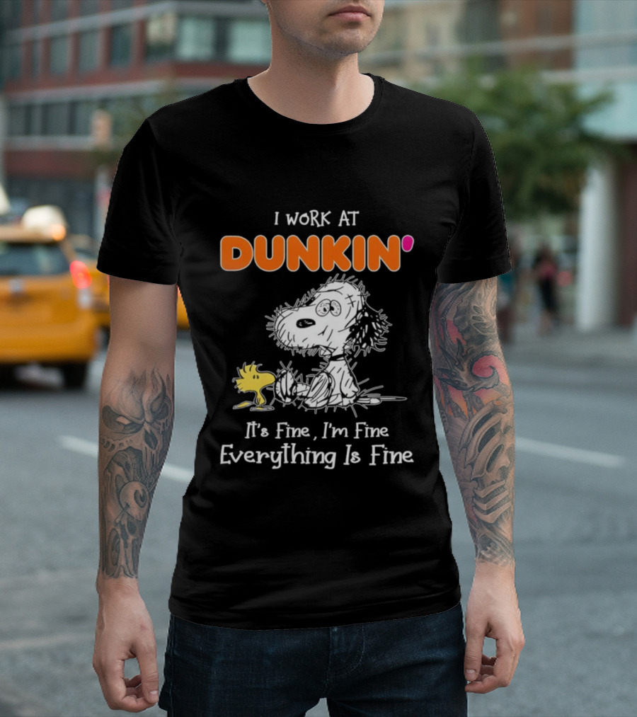 Snoopy And Woodstock Dunkin' It's Fine I'm Fine Everything Is Fine T-Shirt