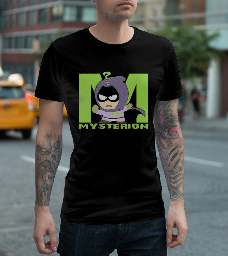 South Park Mysterion Character Pose With Green M Logo T-Shirt