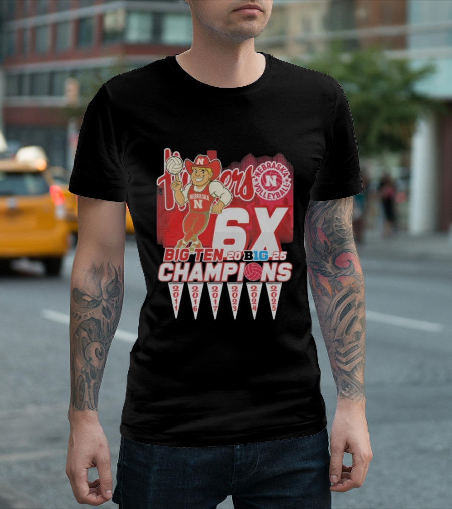Nebraska Volleyball Big Ten Champions 2025 6X Cornhuskers Mascot T-Shirt