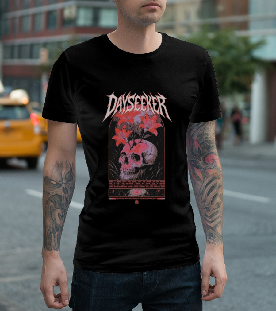 Dayseeker Dancing With The Devil Floral Skull And Moonlight T-Shirt