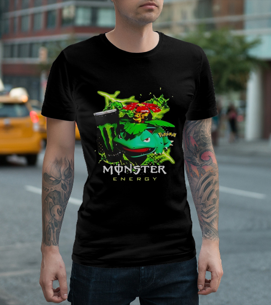 Pokémon Venusaur Vileplume Pikachu And Monster Energy Collaboration T-Shirt