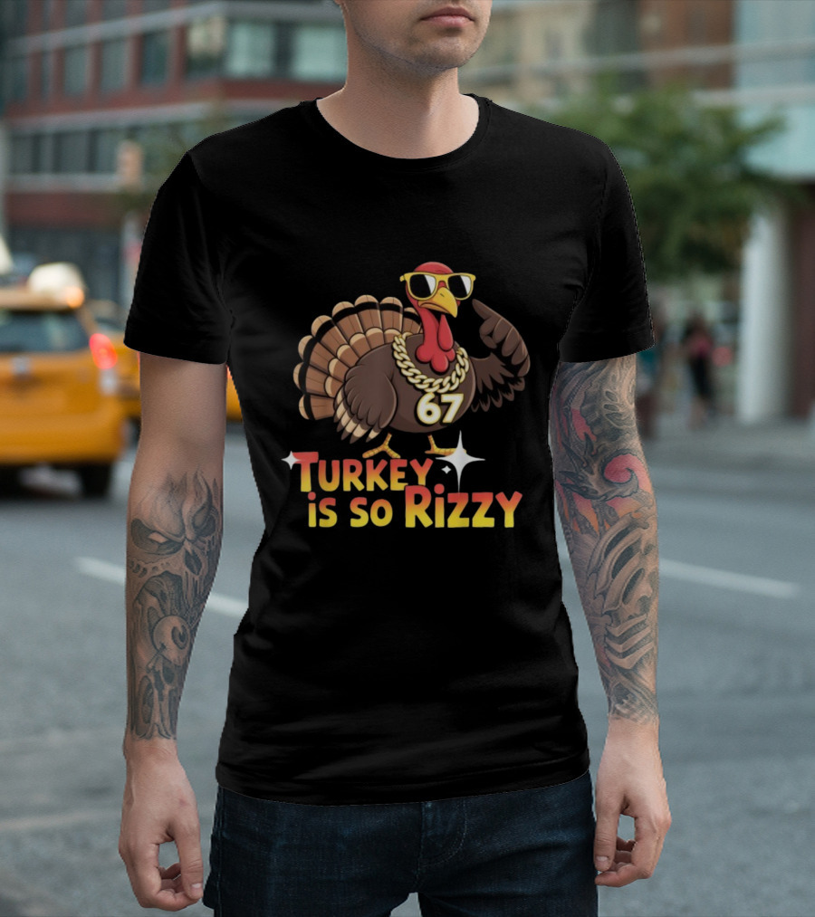 Turkey Is So Rizzy 67 Thanksgiving Turkey With Sunglasses And Bling T-Shirt