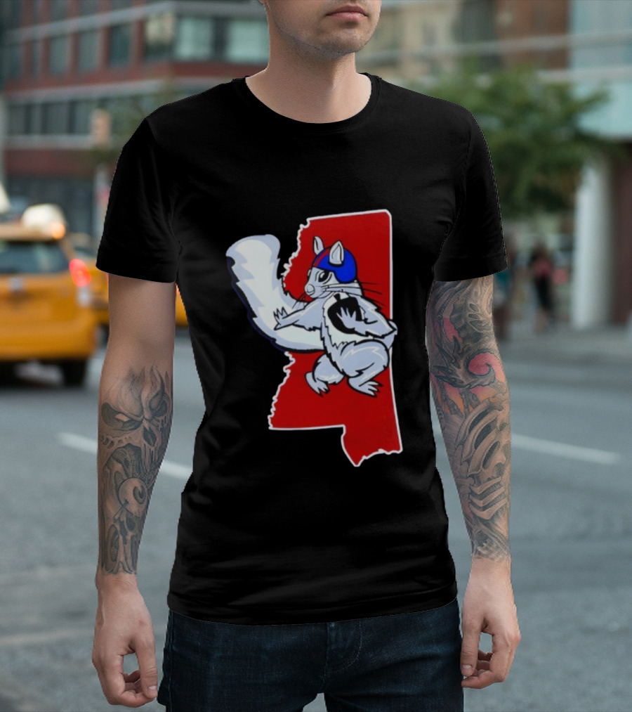 Ole Squirrel Mississippi Football Helmet State Outline T-Shirt