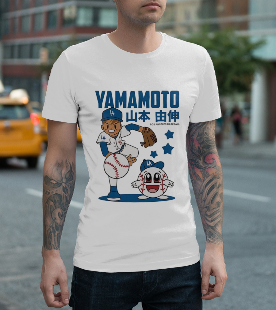 Yamamoto Los Angeles Dodgers Cartoon With Baseball Character And Stars T-Shirt