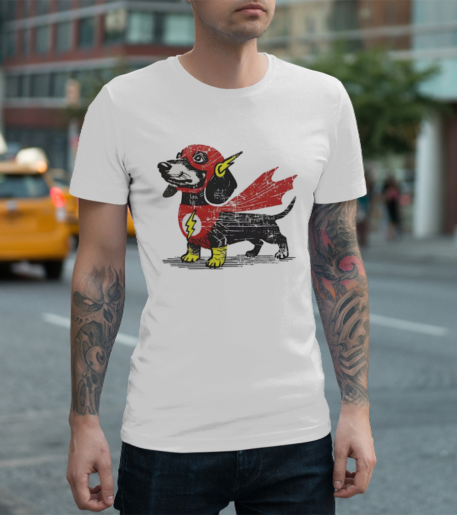 Dachshund Flash Superhero Costume Dog Cape Lightning Symbol T-Shirt