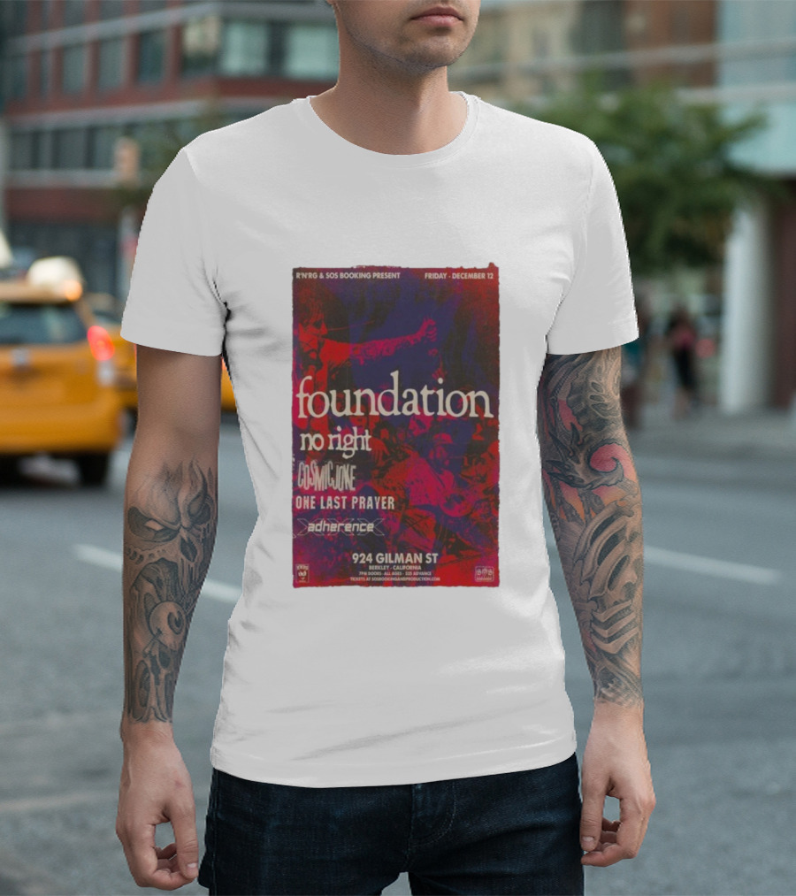 R'N'R'G & SOS Booking Present Foundation No Right Cosmic Joke One Last Prayer Adherence 924 Gilman St Berkeley CA Friday December 12 T-Shirt