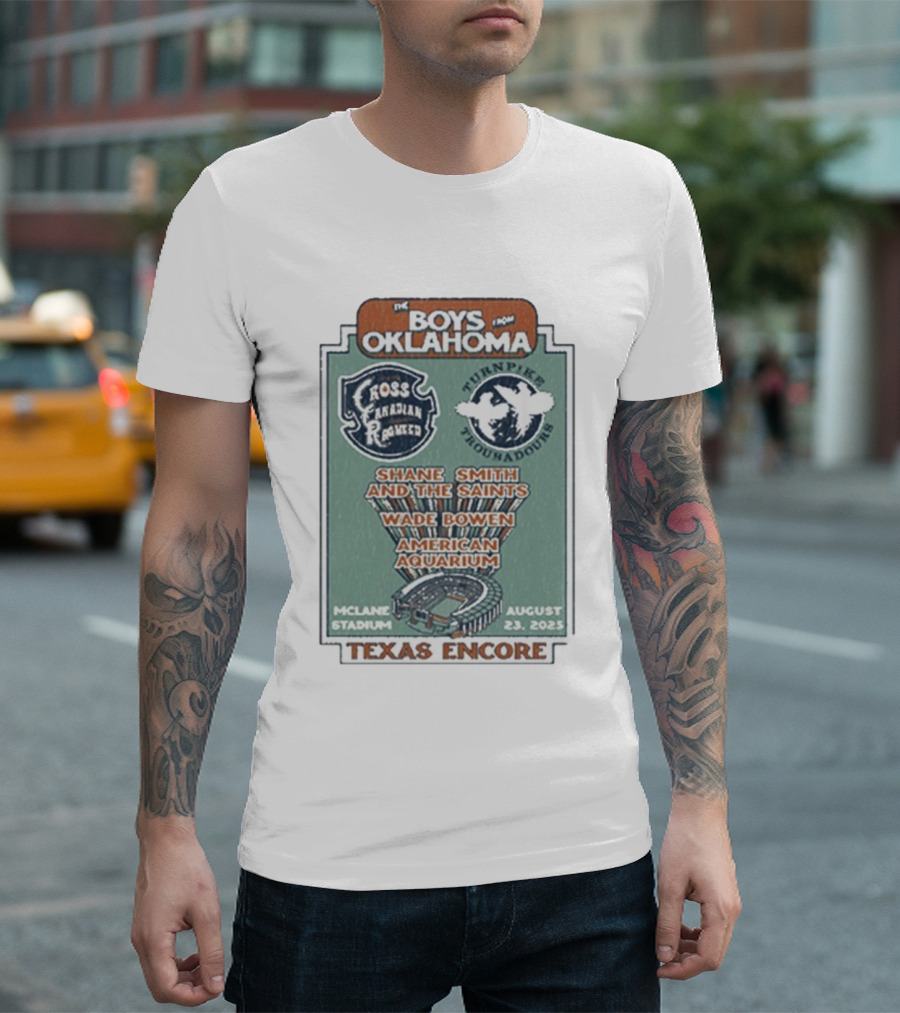 The Boys from Oklahoma Cross Canadian Ragweed Turnpike Troubadours Shane Smith and the Saints Waco McLane Stadium August 23 2025 Texas Encore T-Shirt