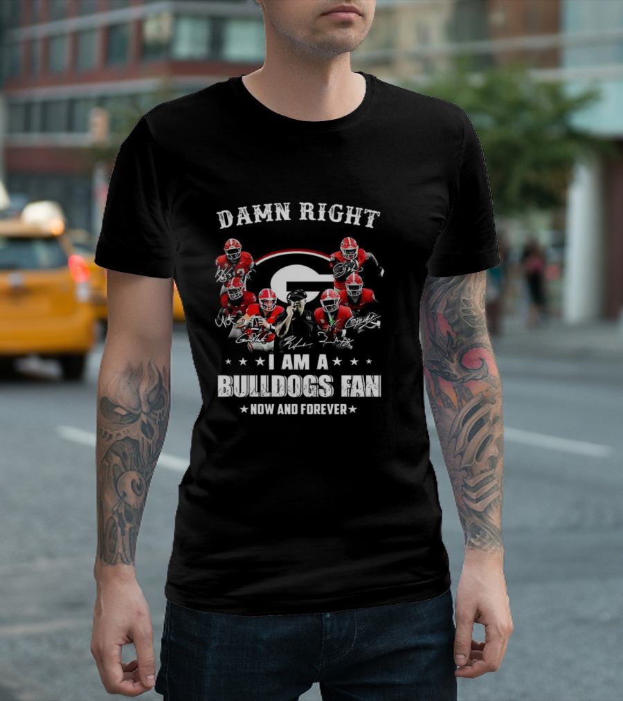 Damn Right I Am A Bulldogs Fan Now And Forever Georgia Football Player Signature T-Shirt