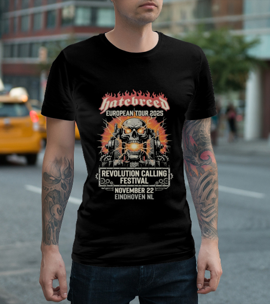 Hatebreed European Tour 2025 Revolution Calling Festival November 22 Eindhoven Netherlands Klokgebouw Hardcore Punk Skull Art T-Shirt