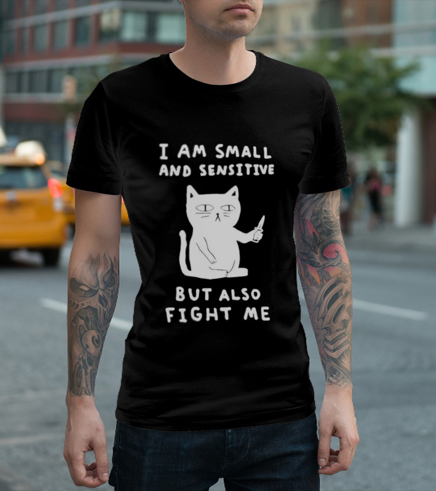 Cat I Am Small And Sensitive But Also Fight Me Playful Humor T-Shirt