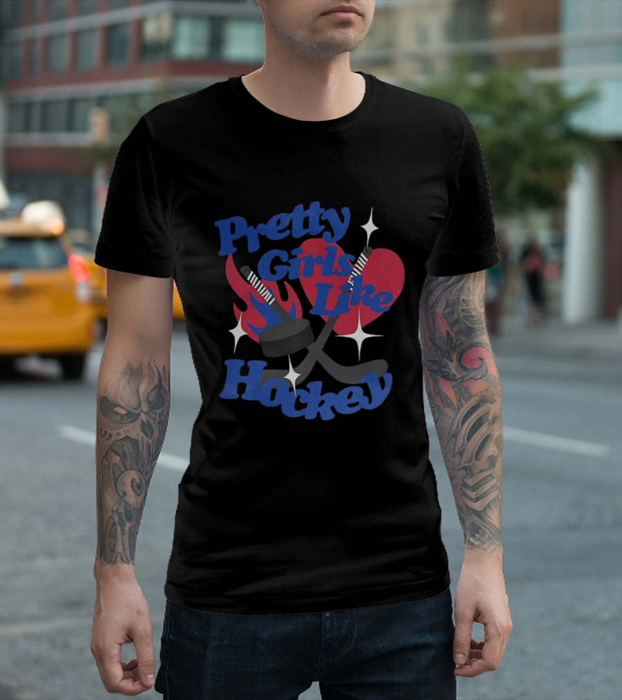 Pretty Girls Like Hockey Sticks And Pucks With Heart And Flames T-Shirt