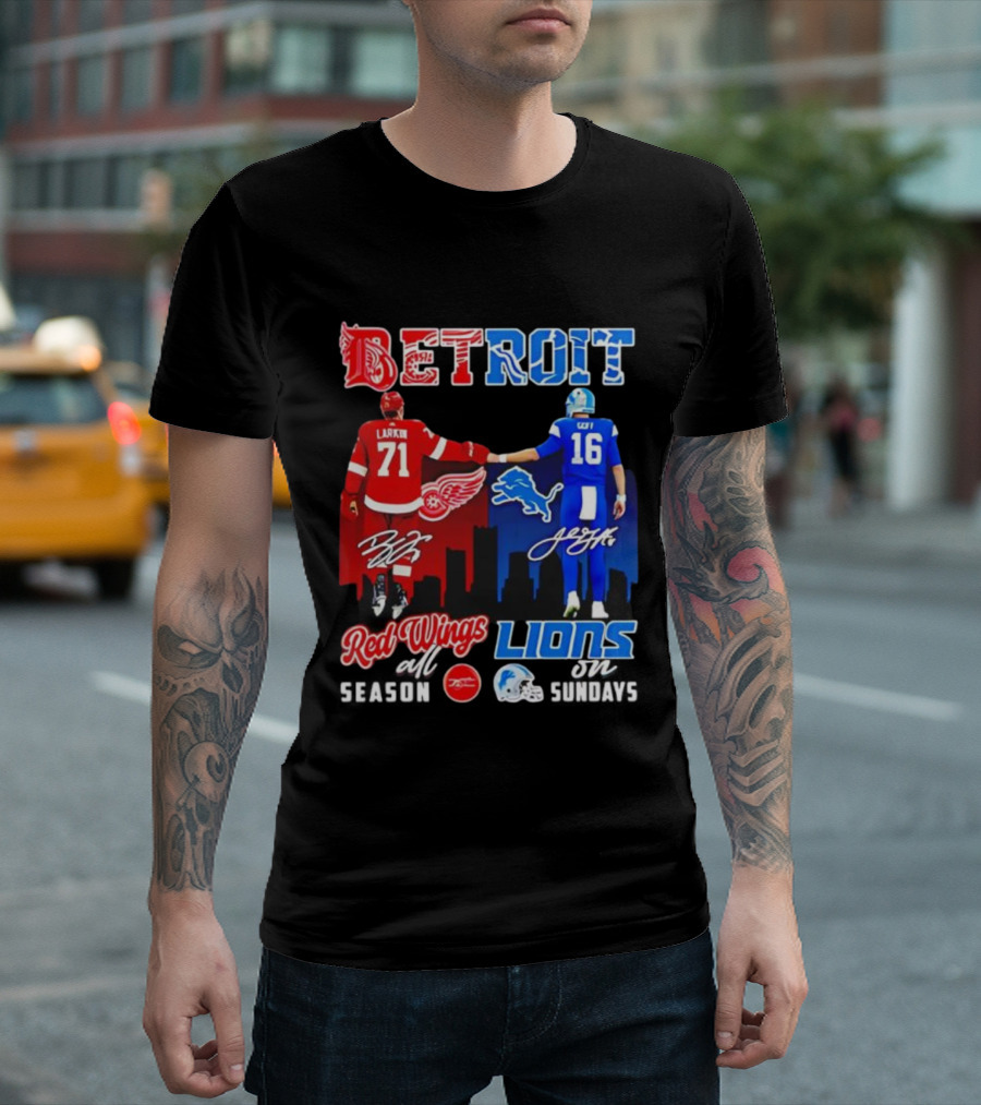 Detroit Sports Red Wings Lions Larkin Goff Signatures T-Shirt