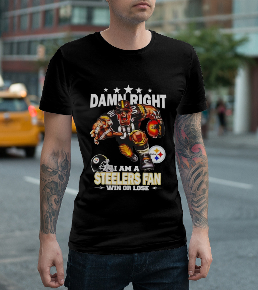 Mascot Damn Right Pittsburgh Steelers Fan Win Or Lose Football Passion T-Shirt