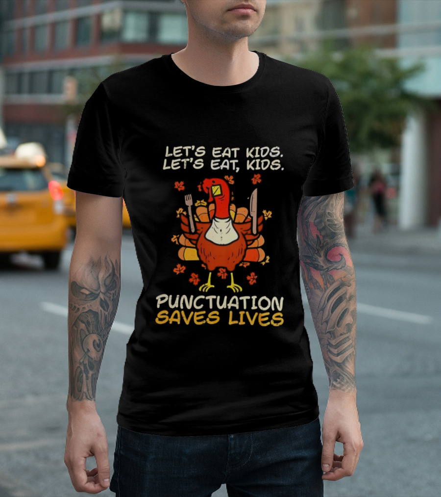 Thanksgiving Teacher Turkey Let’s Eat Kids Let’s Eat, Kids Punctuation Saves Lives T-Shirt