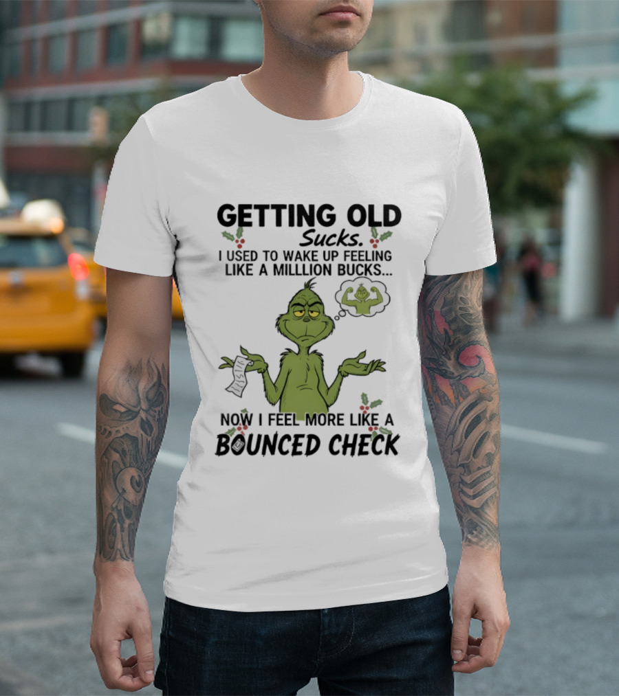 Getting Old Sucks Grinch I Used To Wake Up Feeling Like A Million Bucks Now I Feel More Like A Bounced Check T-Shirt