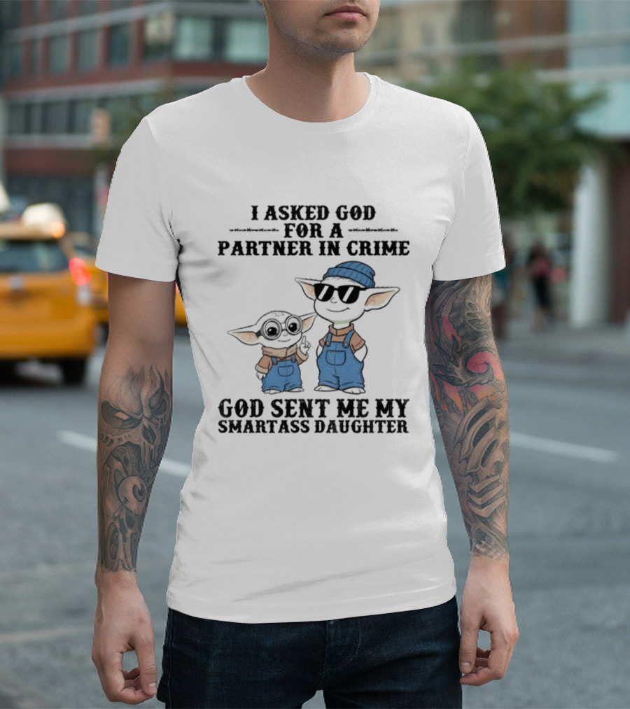 Baby Yoda I Asked God For A Partner In Crime God Sent Me My Smartass Daughter T-Shirt
