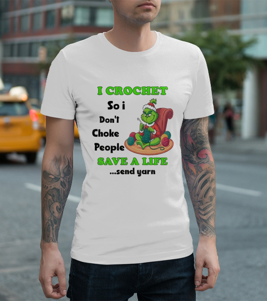 I Crochet So I Don’t Choke People Save A Life Send Yarn Grinch Xmas T-Shirt