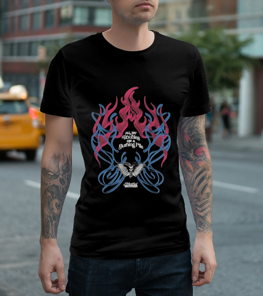 Mother Mother All My Troubles Burning Pile Flame Skull Wings T-Shirt
