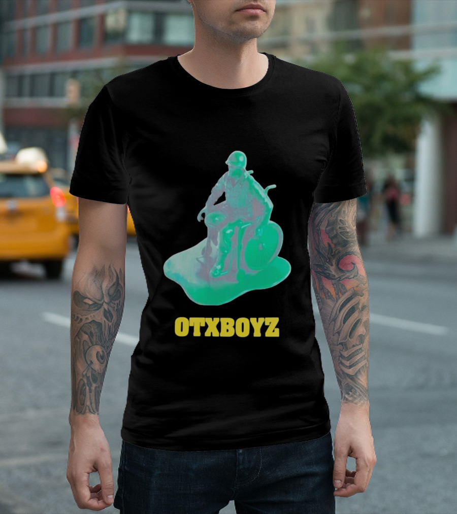 OTXBOYZ Toy Soldier In Wheelchair Vibrant Green Military Imagery T-Shirt