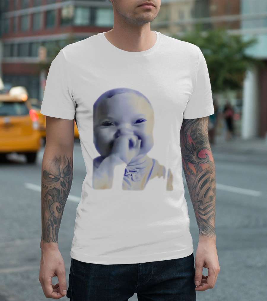 AI Baby Holding Laugh Meme Blue Tones T-Shirt