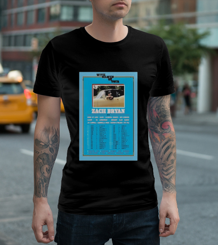 Zach Bryan With Heaven On Tour 2026 Dates Featuring Kings Of Leon And Ben Howard T-Shirt