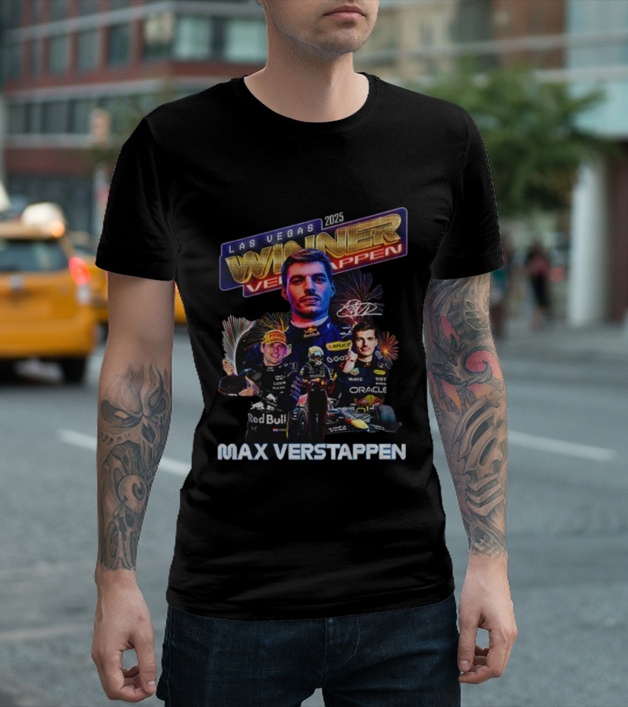 Max Verstappen 2025 Las Vegas Winner Red Bull Racing Signature T-Shirt