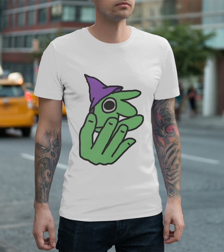 Glep Smiling Friends Character With Green Hand And Purple Hat T-Shirt