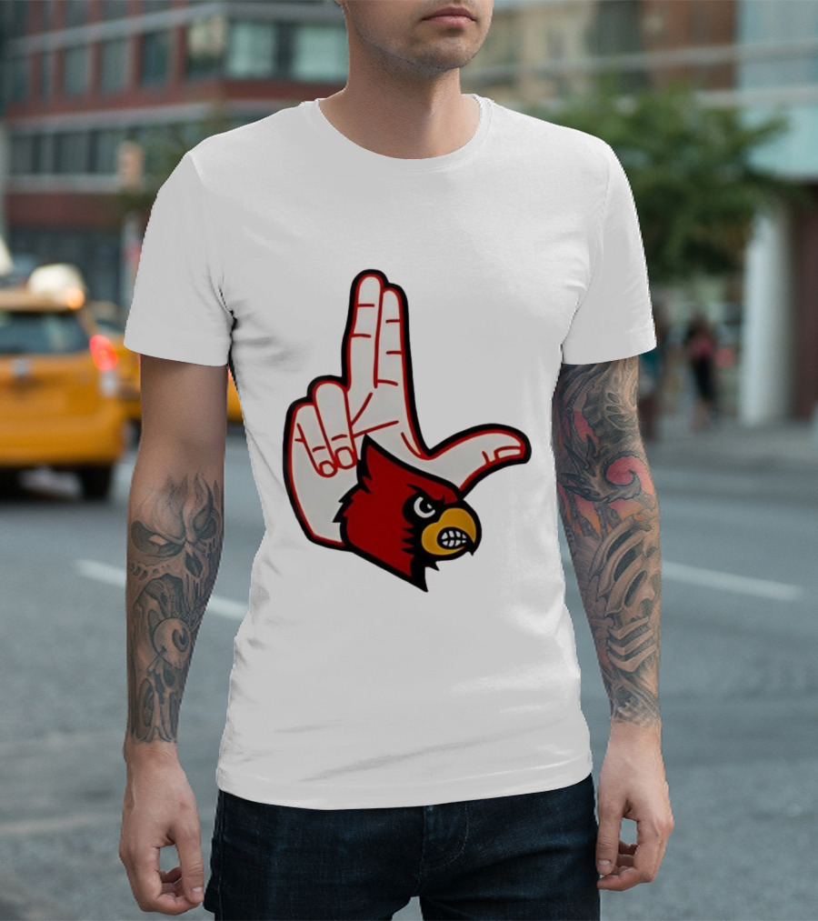 Louisville Cardinals 2025 L Hand Sign Mascot Football T-Shirt