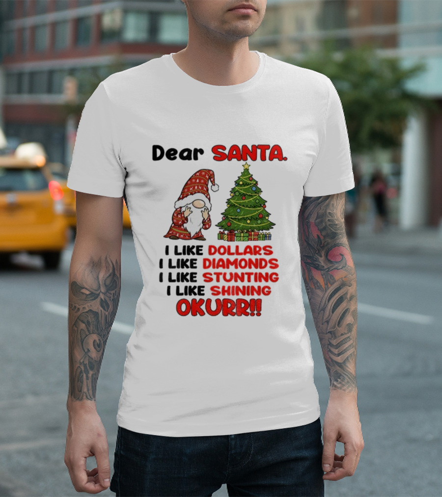 Dear Santa Gnome Xmas I Like Dollars Diamonds Stunting Shining Okurrr Merry Christmas T-Shirt