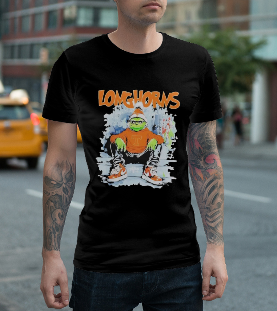 Texas Longhorns Christmas 2025 Grinch Sitting On Steps T-Shirt