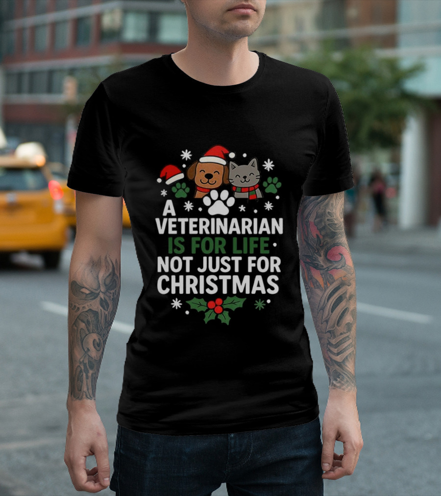 A Veterinarian Is For Life Not Just For Christmas Dog Cat Santa Hats T-Shirt
