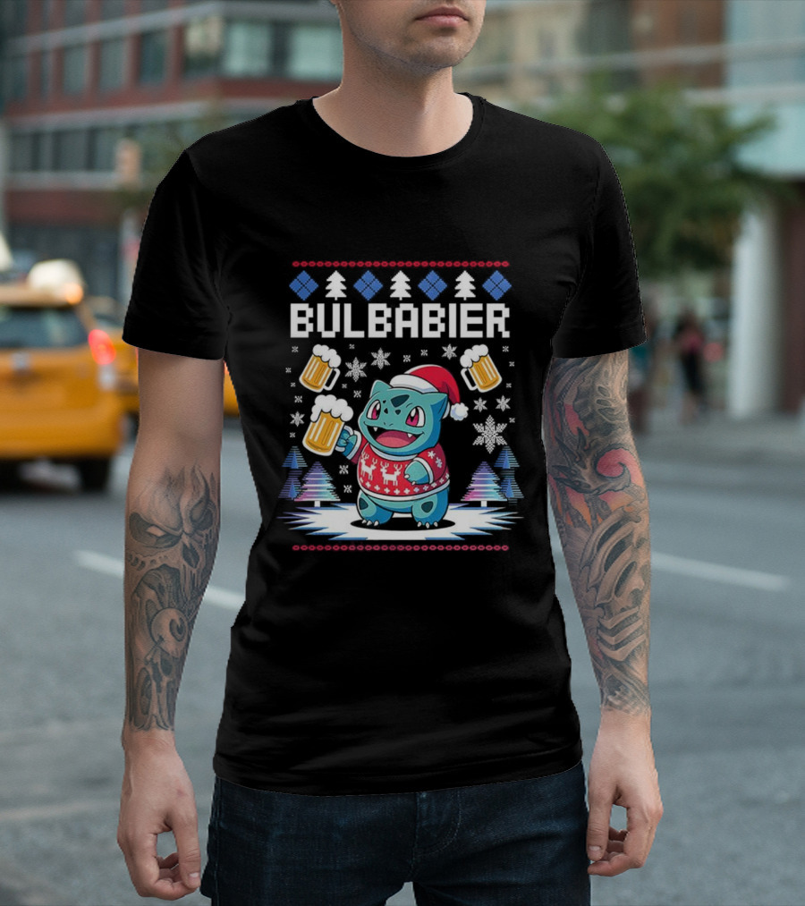 Bulbabier Christmas Sweater Bulbasaur With Santa Hat And Beer S T-Shirt