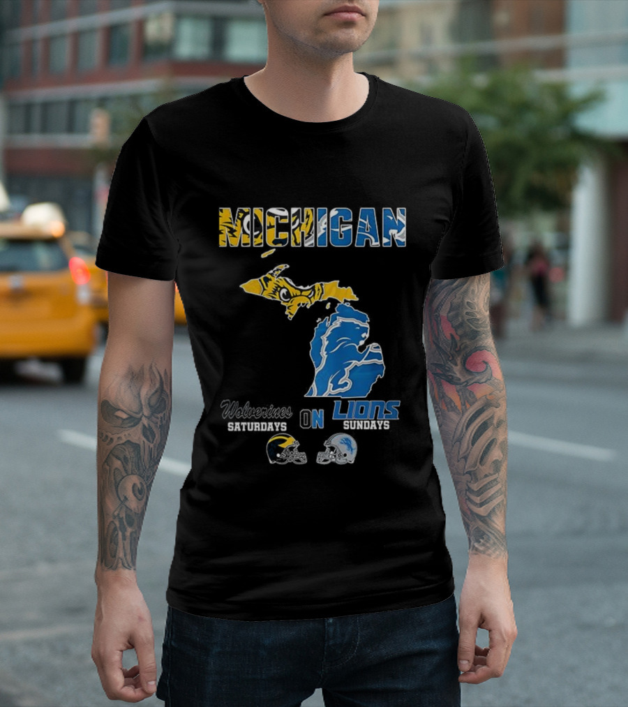 Michigan Wolverines Saturdays Detroit Lions Sundays Map T-Shirt