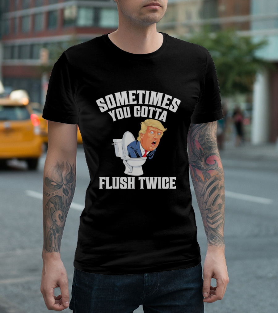 Sometimes You Gotta Flush Twice Trump Toilet Humor T-Shirt