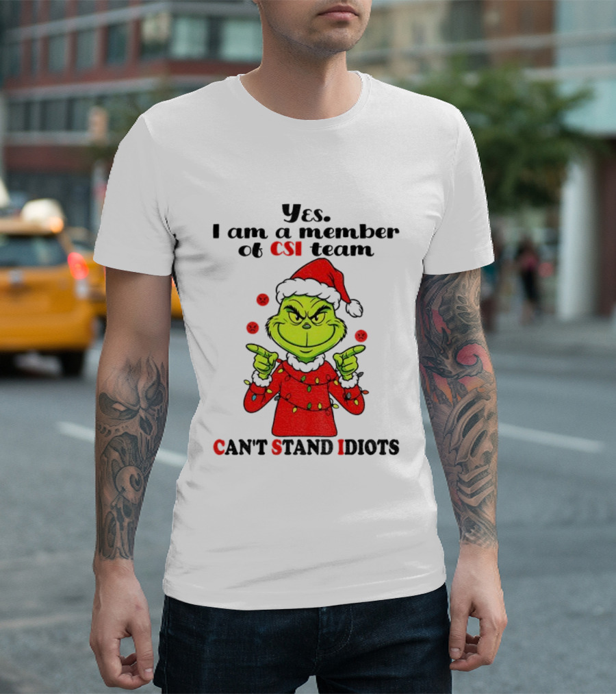 Grinch Santa Hat Yes I Am A Member Of CSI Team Can’t Stand Idiots Merry Christmas T-Shirt