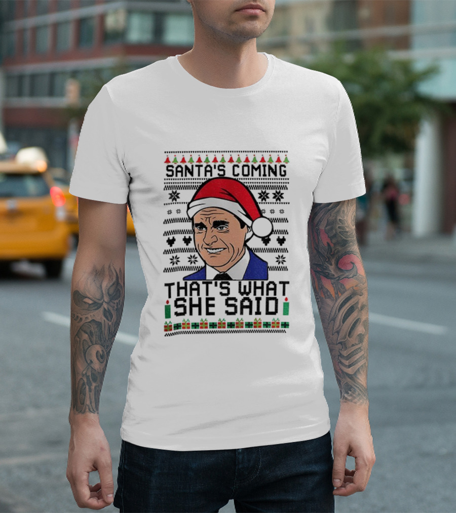 Michael Scott Santa Hat That's What She Said Christmas Sweater Style T-Shirt