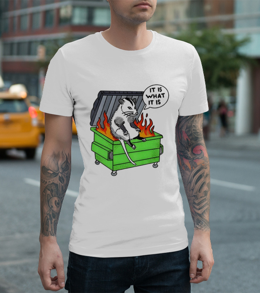 Possum Sitting In A Dumpster On Fire Saying It Is What It Is T-Shirt
